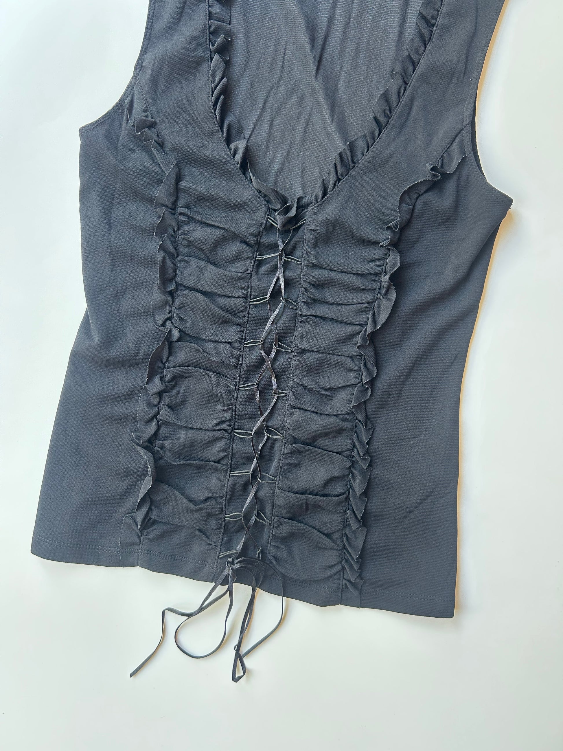 90s Lace Up Ruffle Top ✮ Size XS-M