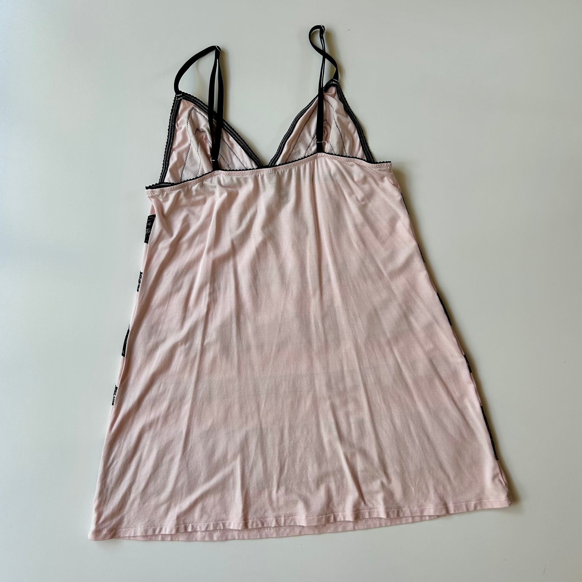 Victoria's Secret pink and black lace babydoll slip dress with bow detail