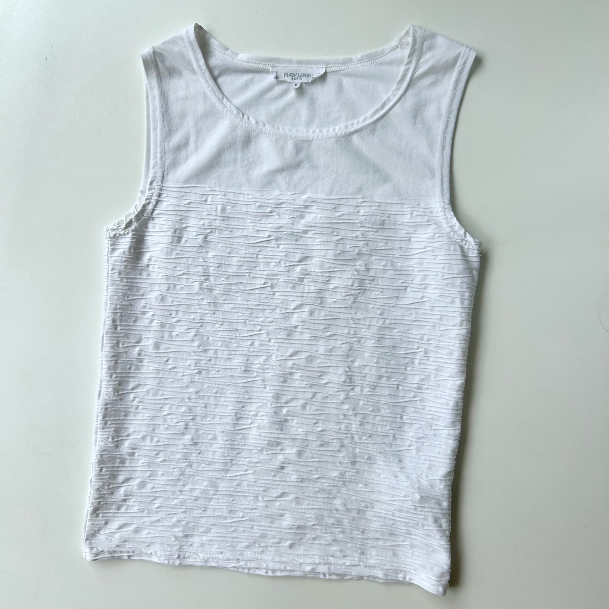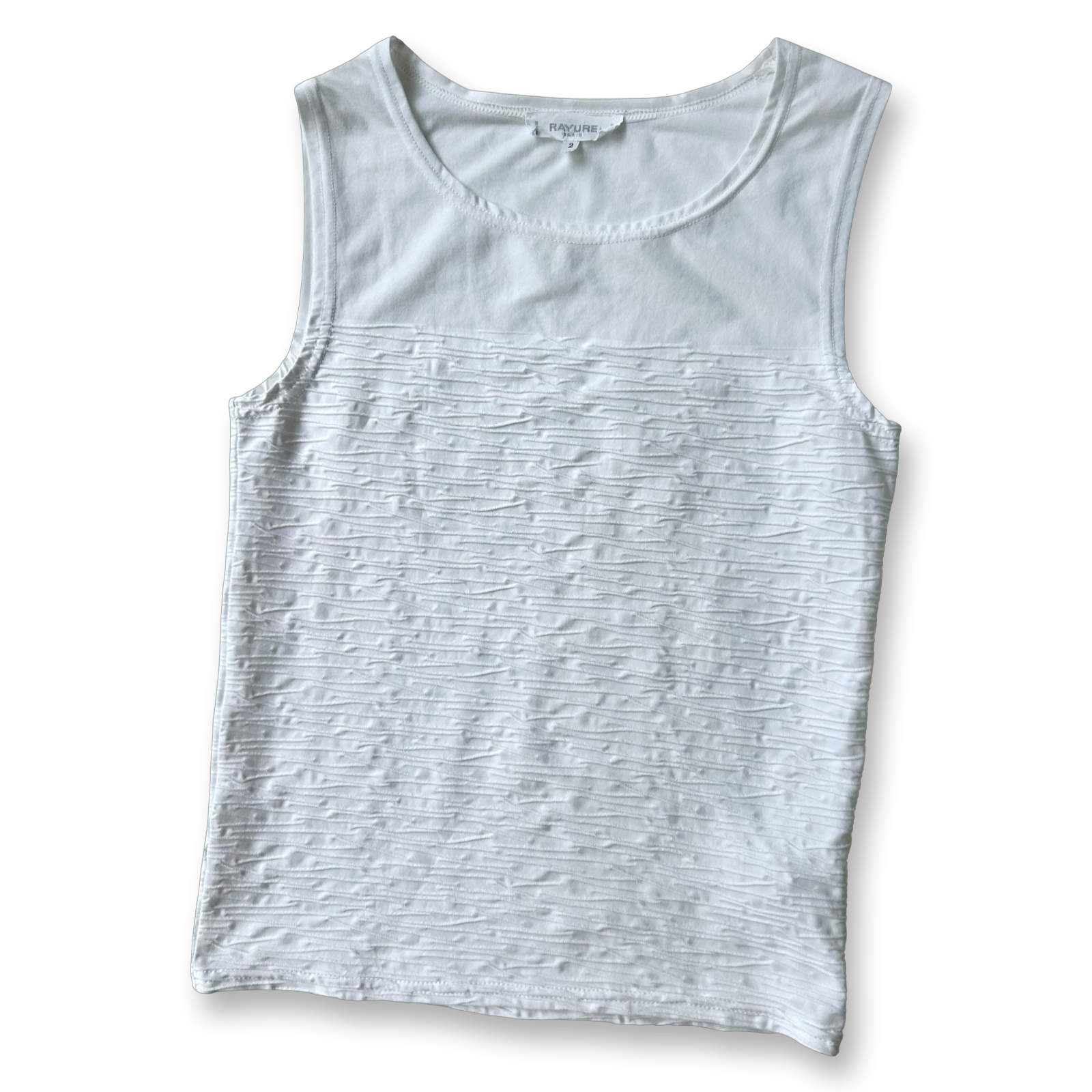 White sleeveless top with ribbed texture. An elevated basic.